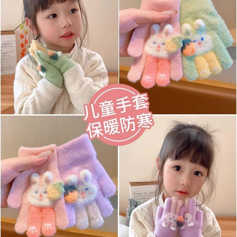 Детские перчатки осень и зима мужские и женские плюшевые утолщенные теплые с пальцами детские цветные мультяшные кролики для игр на улице