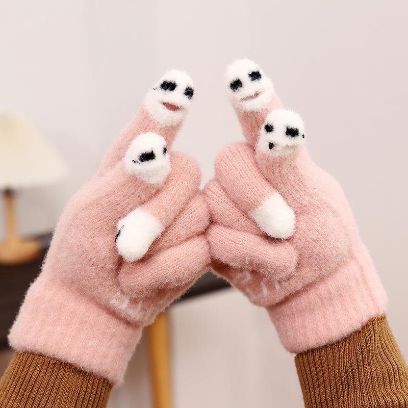 Перчатки без пальцев, теплые и защищающие от холода плюшевые вязаные, милые студенты осенью и зимой, кончики пяти пальцев