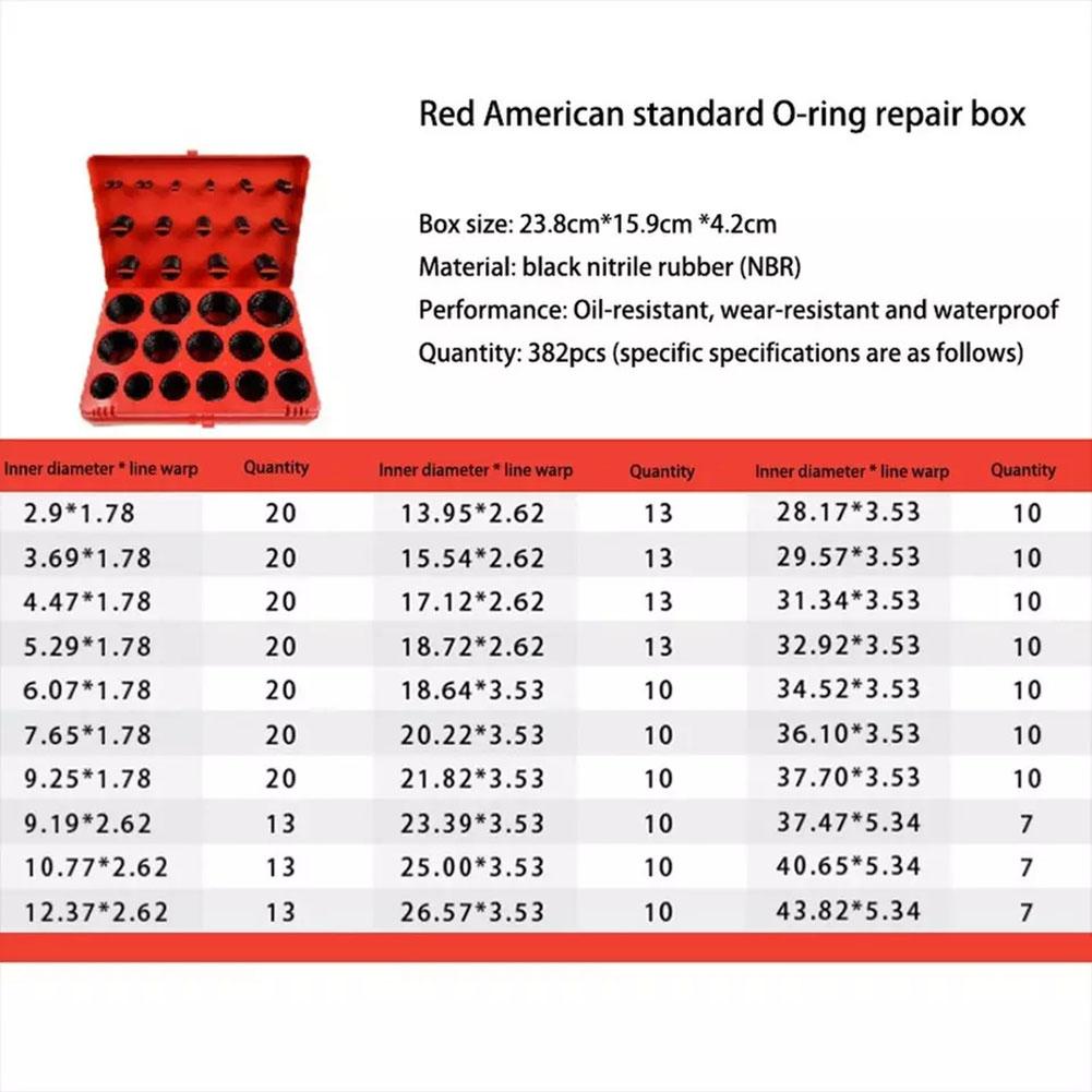 382 шт. Дюймовый набор уплотнительных колец Ремонтный набор Кейс-бокс Ассортимент 30 размеров Нитриловая резина Уплотнительное кольцо Уплотнительная прокладка Для сантехники Автомобильный