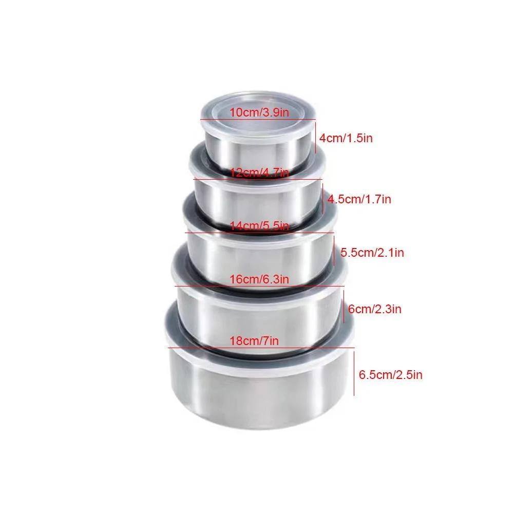 5Pcs/set Salad Bowl Stackable Stainless Steel Mixing Set with Lid Storage Bowl Whisking Bowl for Serving/Cooking/Baking/Storage