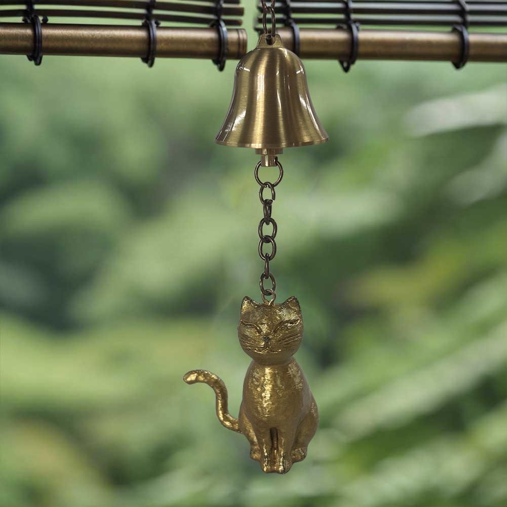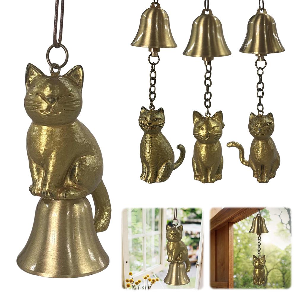 Латунный колокольчик ветра в виде кошки, ручная работа, милый колокольчик ветра в виде котенка, уникальный мемориальный колокольчик ветра для украшения двери и окна