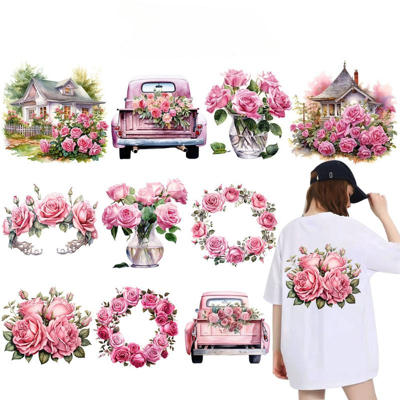 Цветочные термотрансферные наклейки Милый дизайн Готовые к приклеиванию Виниловые декали для термопереноса Аппликация для футболки Рюкзака Одежды