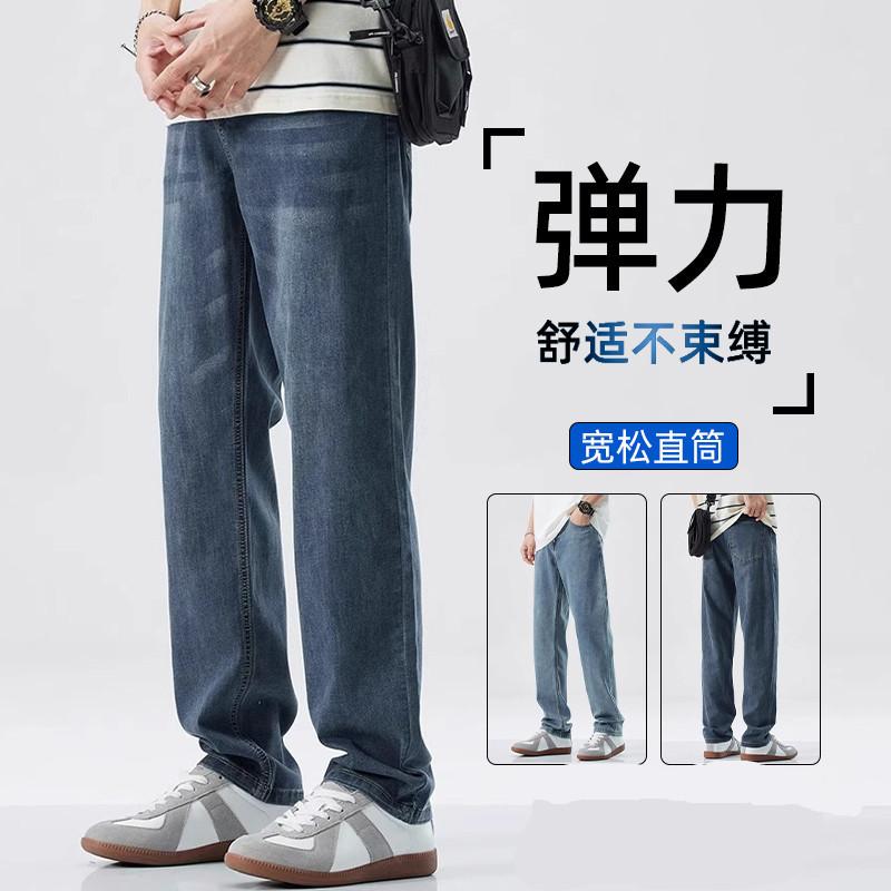 Прямые свободные выстиранные джинсы мужские летние тонкие модные универсальные свободные высокие и стройнящие эластичные повседневные брюки