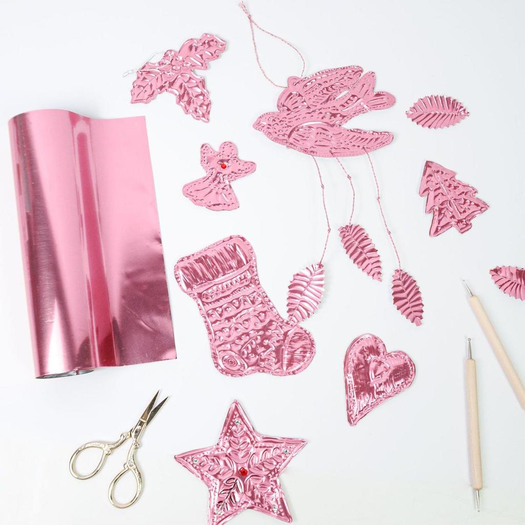 2. Художественная двусторонняя привлекательность: Тисненые листы фольги представляют собой тисненую алюминиевую фольгу с серебристой стороной и розовым золотом или розовым цветом с другой, что позволяет создавать гибкие креативные стили для рукодельных проектов, усиливая визуальную привлекательность в открытках, скрапбуках и домашнем декоре, и предлагая особые дизайнерские возможности для художественного выражения.