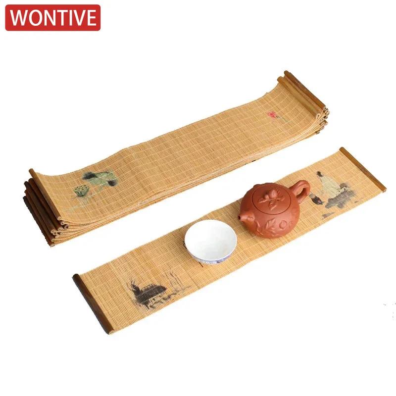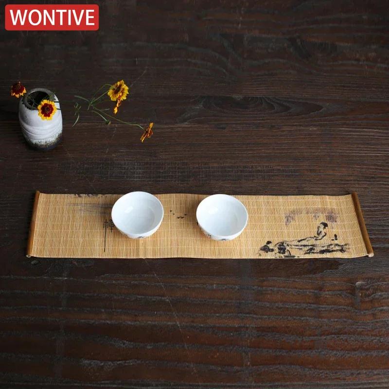 Китайская Печатная Салфетка для Чайного Подноса Водонепроницаемая Дорожка на Стол Чайная Подставка Аксессуары для Дзен Чайной Церемонии Ручная Работа Бамбуковая Изоляция