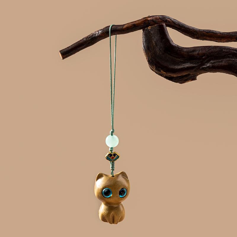 1pc Ebony Cute Black Cat Keychain Decor for Mobile Phone Chain Hand-knitted Creative Cute Accessories Sandalwood Wooden Gifts