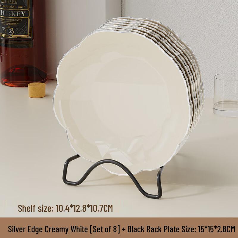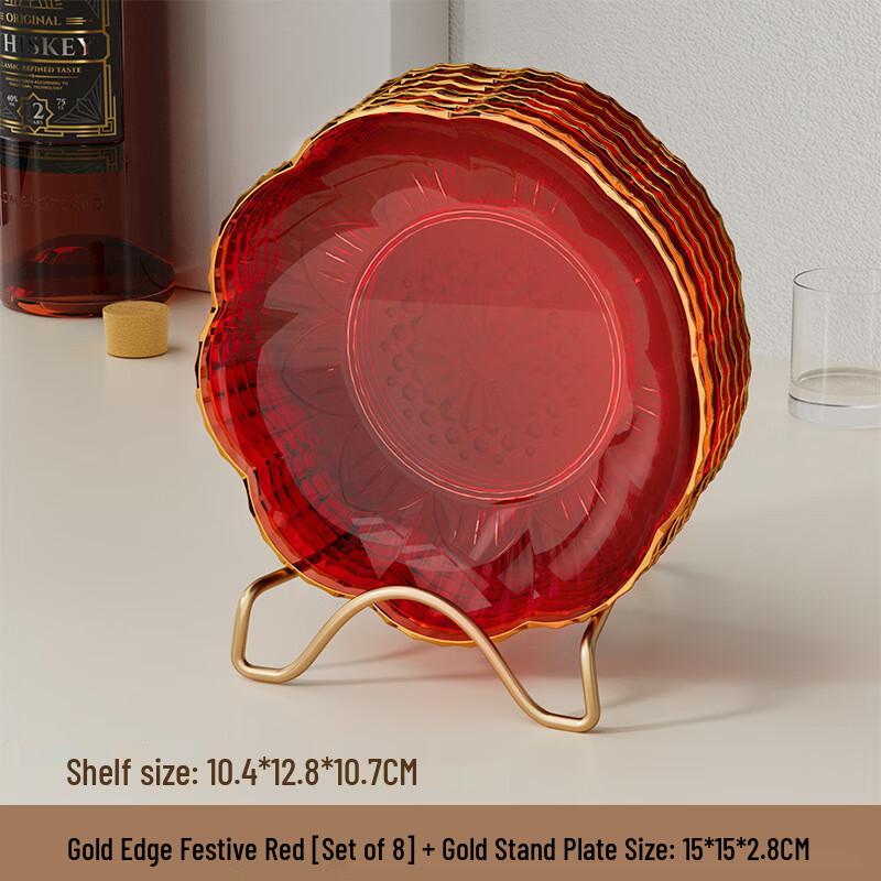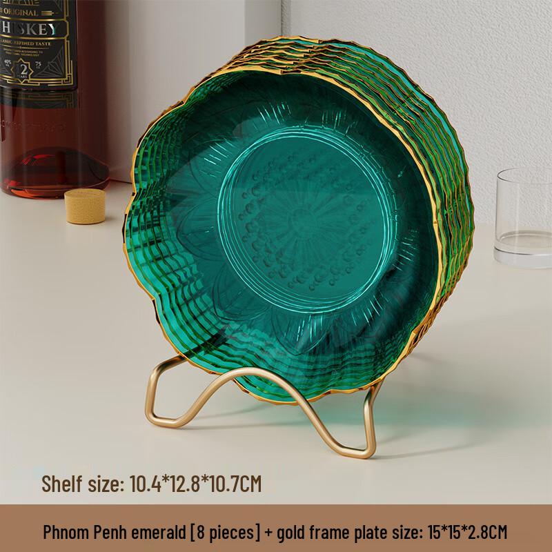 МодельИзумрудно-зеленый с золотой каймой - 8 костяных тарелок + золотая подставка