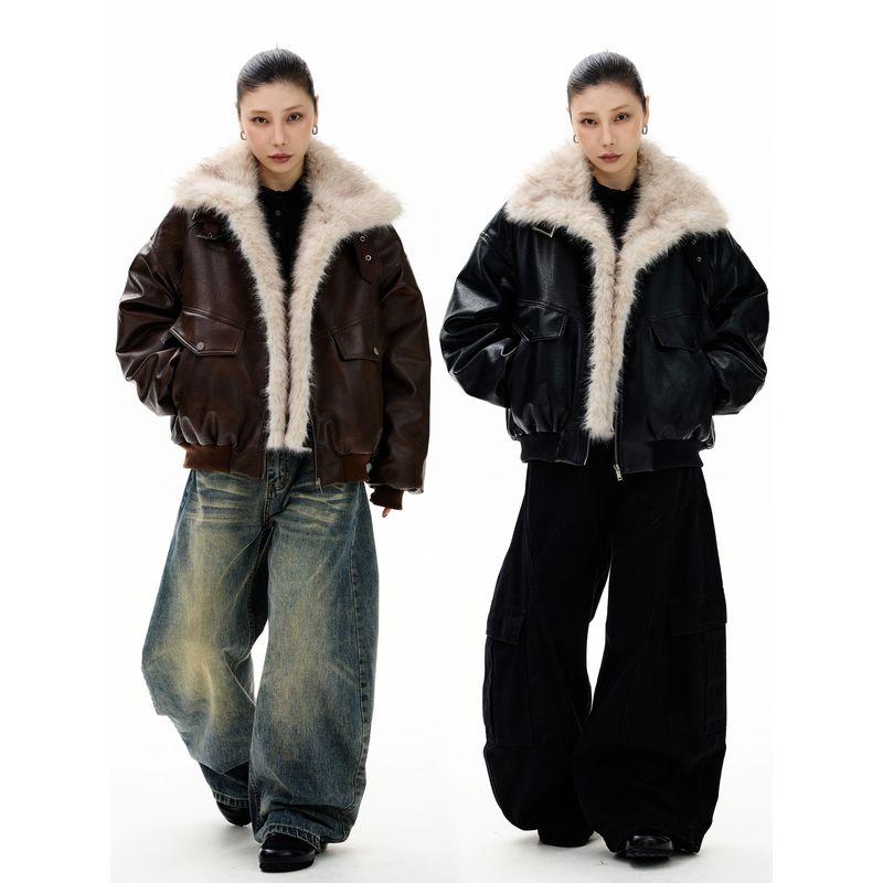 Kisko Winter American-Style Thickened Stand-Collar Leather Jacket Cotton Coat for Men and Women, High-End, Warm, Loose-Fitting Trendy Outerwear