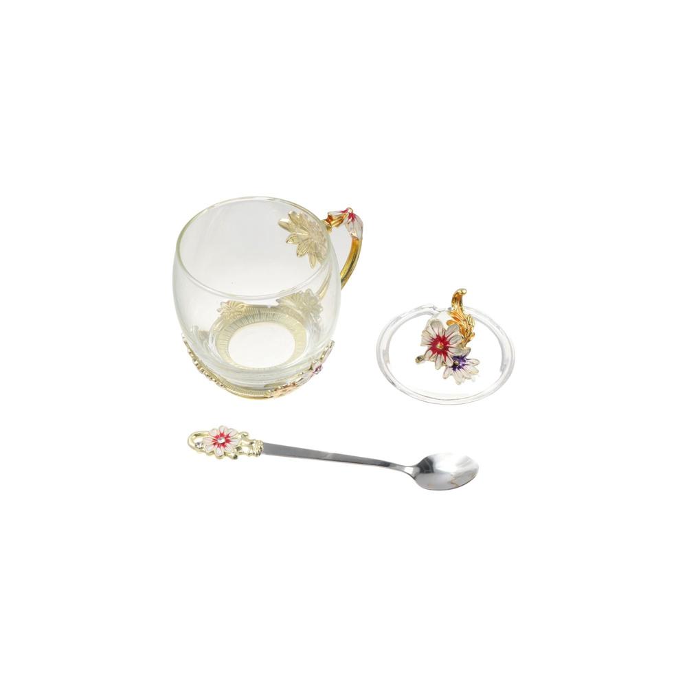 Package Includes: 1pc Glass Teacup(1pc Spoon,1pc Lid,1pc Plate)