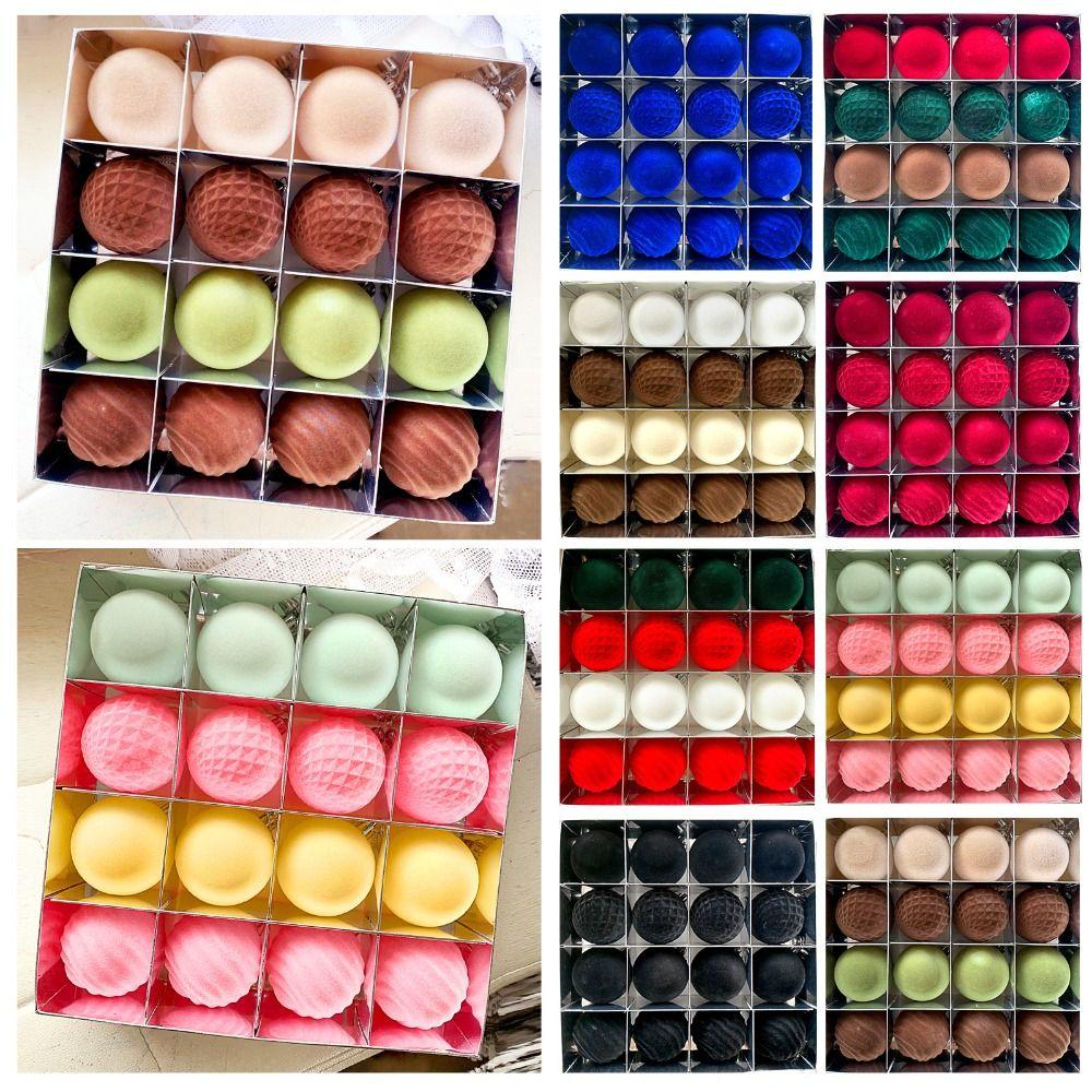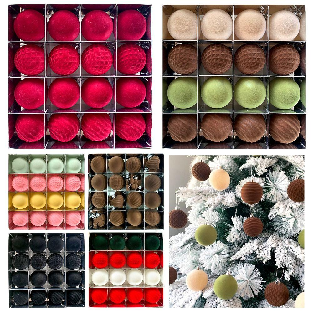 16pcs Flocking Christmas Tree Ball Pendant 6cm Xmas Tree Ornaments Wedding Party Supplies