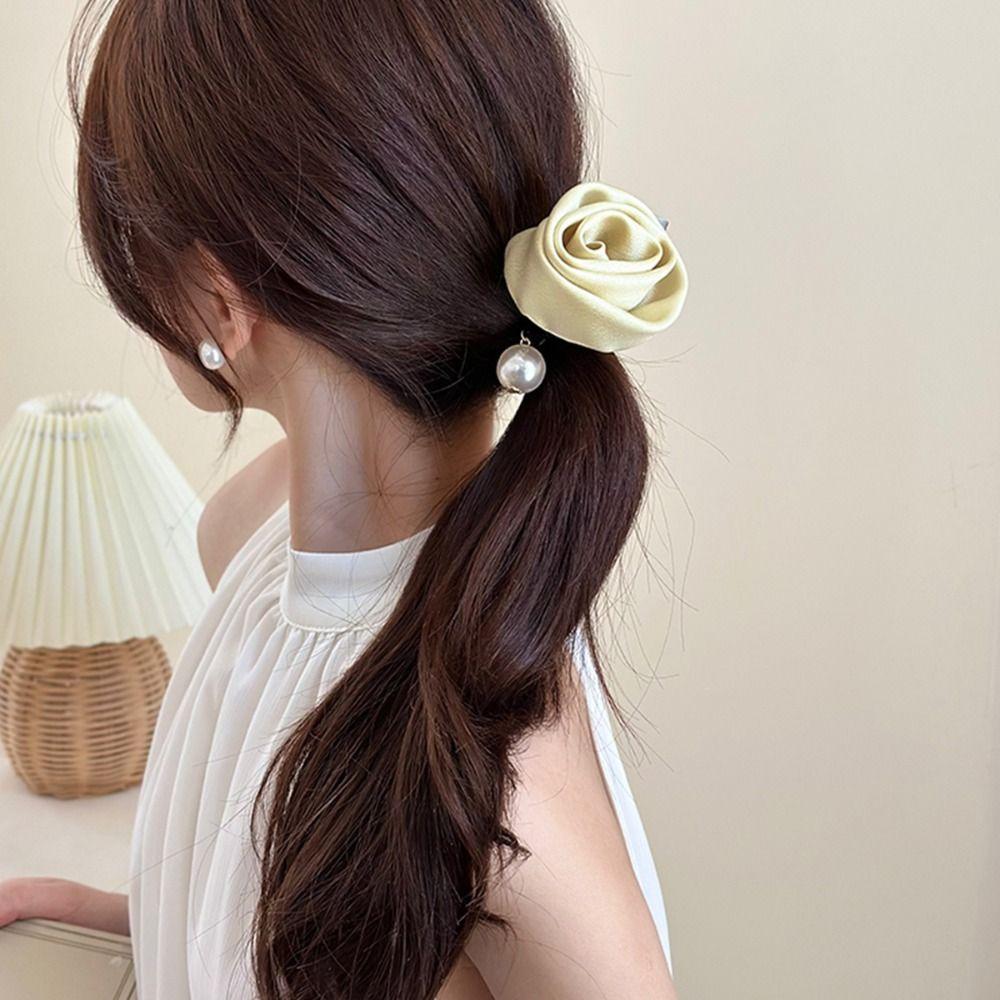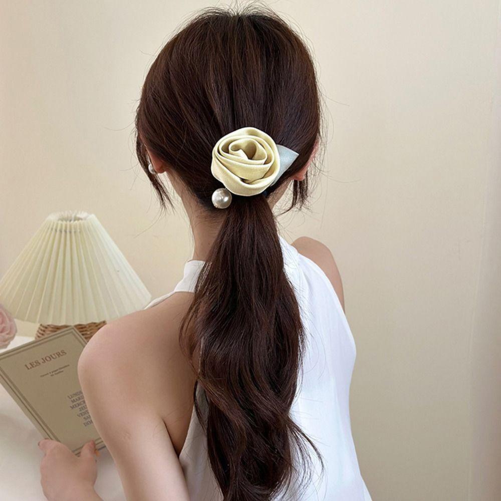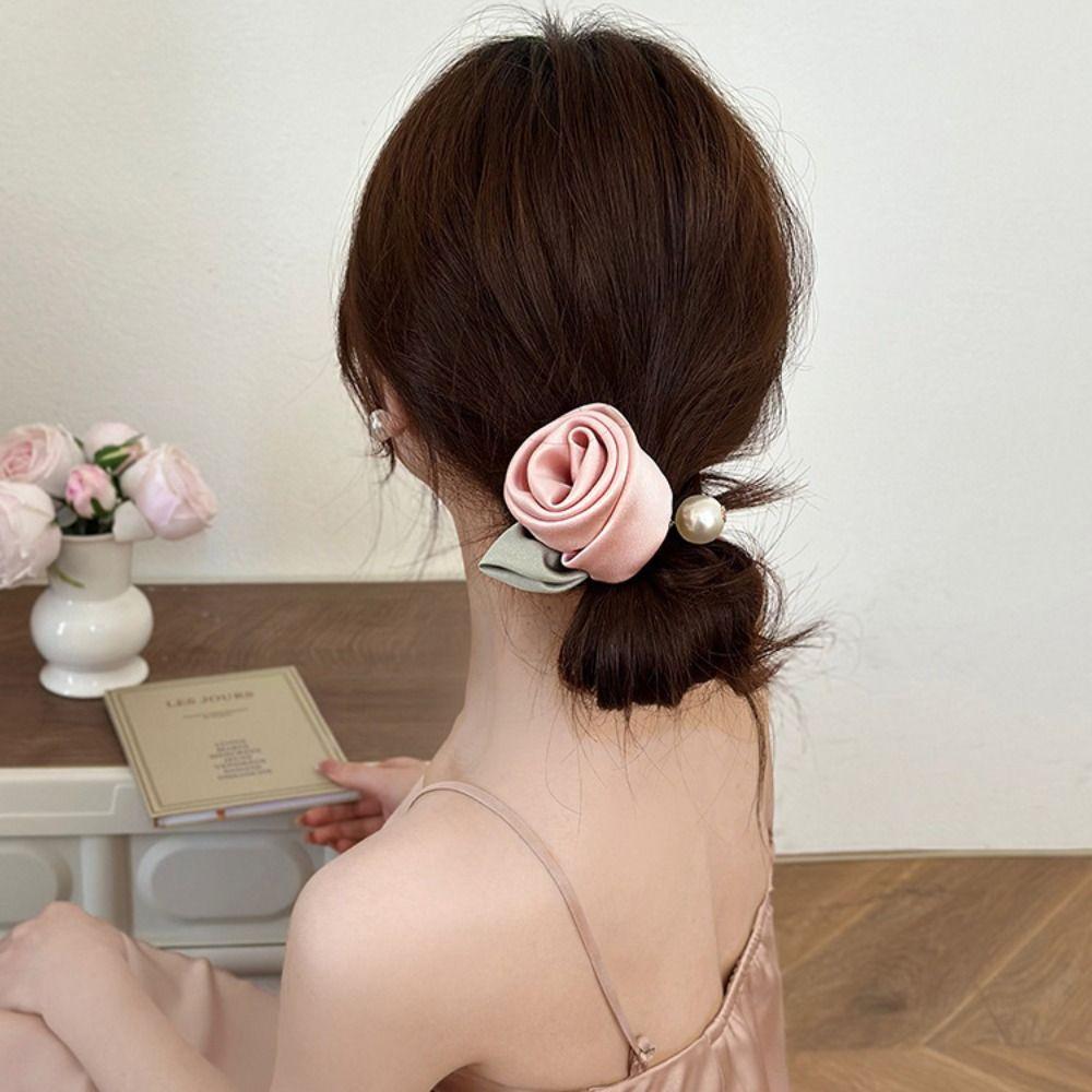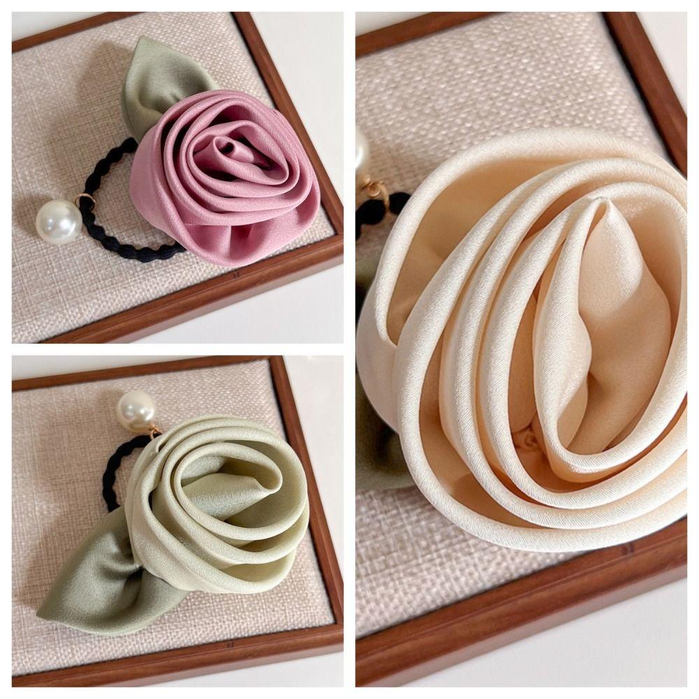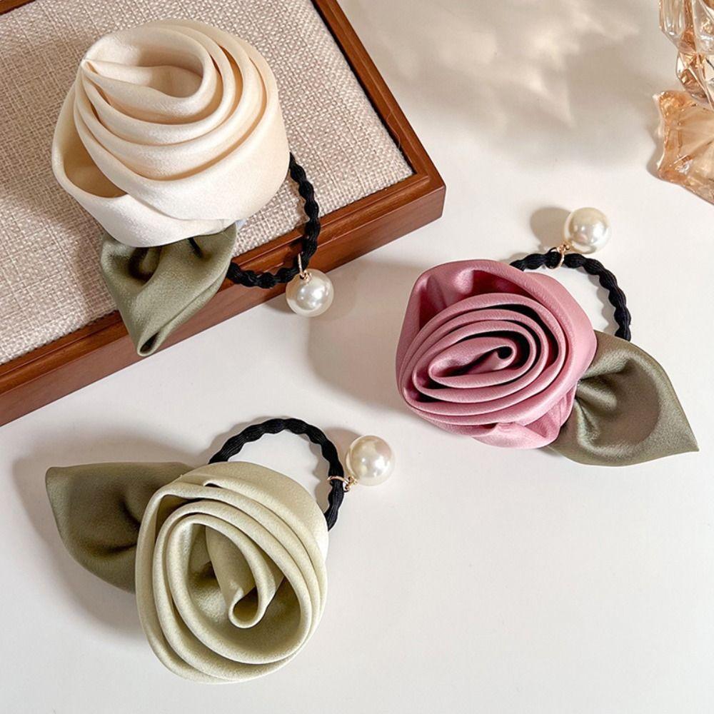 Шелковая резинка для волос из атласа "Лист" Эластичная резинка для волос Темпераментная роза Резинка для волос Женщины