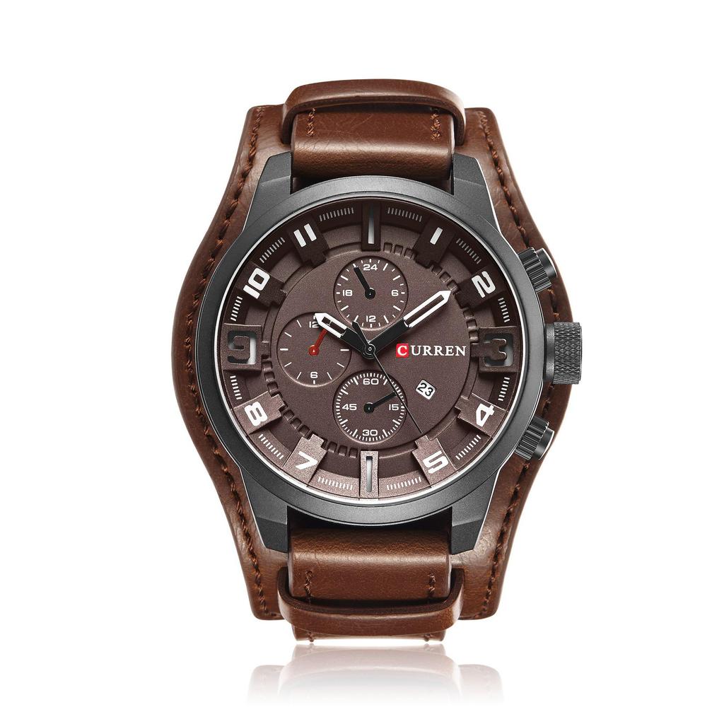 CURREN 8225 Мужские часы с большим циферблатом, дизайном с тремя стрелками и кожаным ремешком
