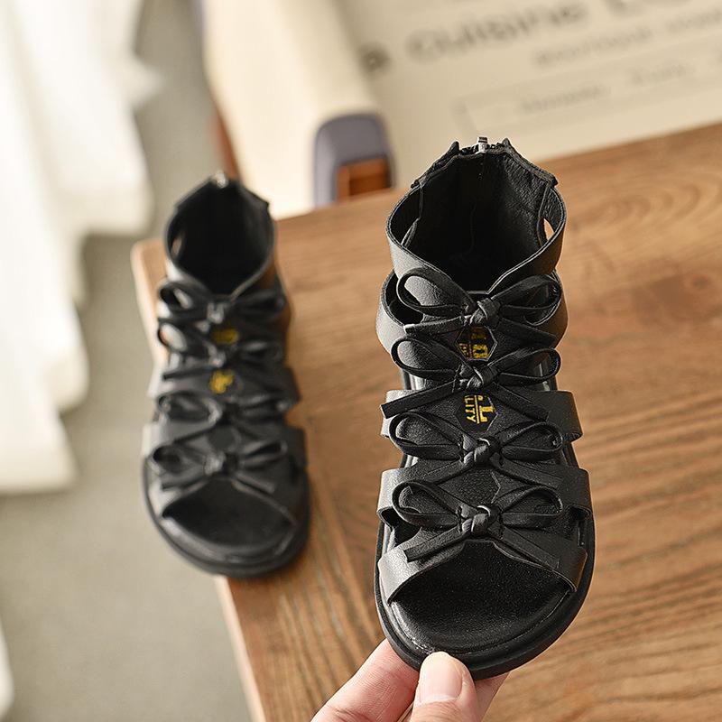 Летние сандалии-гладиаторы из мягкой кожи для девочек 2025 - Туфли принцессы в корейском стиле