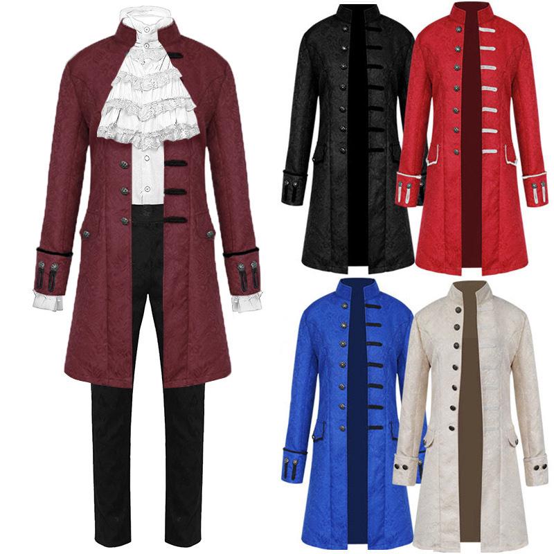 2025 Мужское средневековое жаккардовое пальто однотонного цвета - Рождественский костюм для выступления