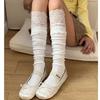Хлопковые чулки выше колена в японском стиле, длинные носки-гольфы, милые кружевные носки до бедра для ботинок, лето