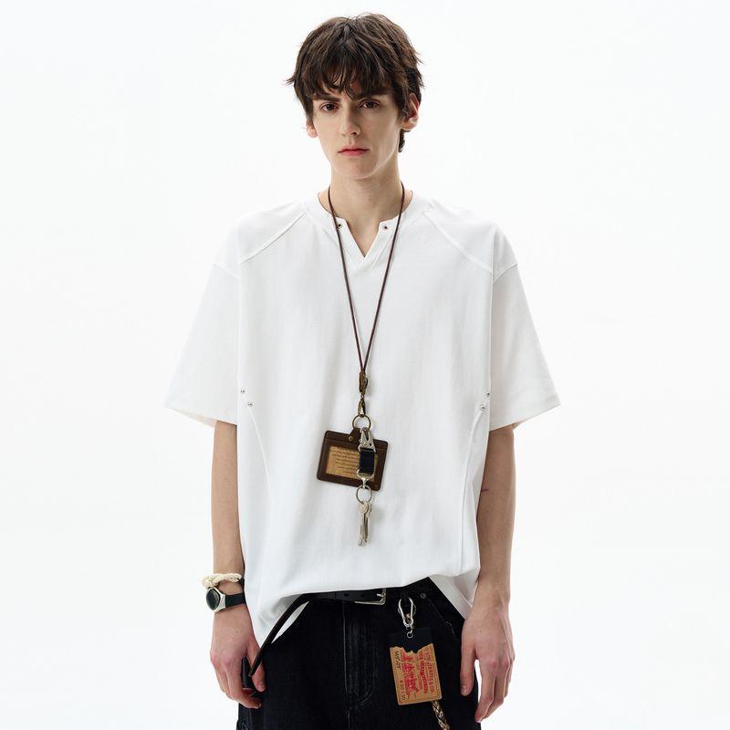 Madwitch Summer Casual Deconstructed Design Small V-Neck Short-Sleeved Unisex Loose Versatile Vibe High-End T-Shirt