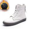 Женские Белые Ботинки Мартинс Большого Размера Высокие - 2025 Универсальные Осенне-Зимние На Плоской Подошве с Утеплением Флисом и Двойными Молниями.
