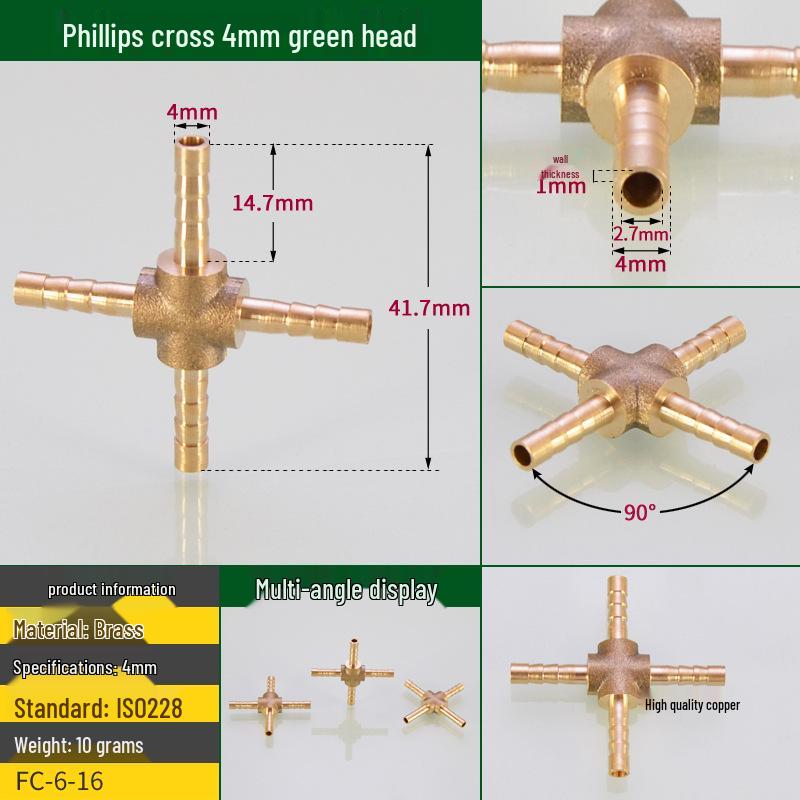 Латунный 4-ходовой газовый шланг с головкой-пагодой (4-19ММ)