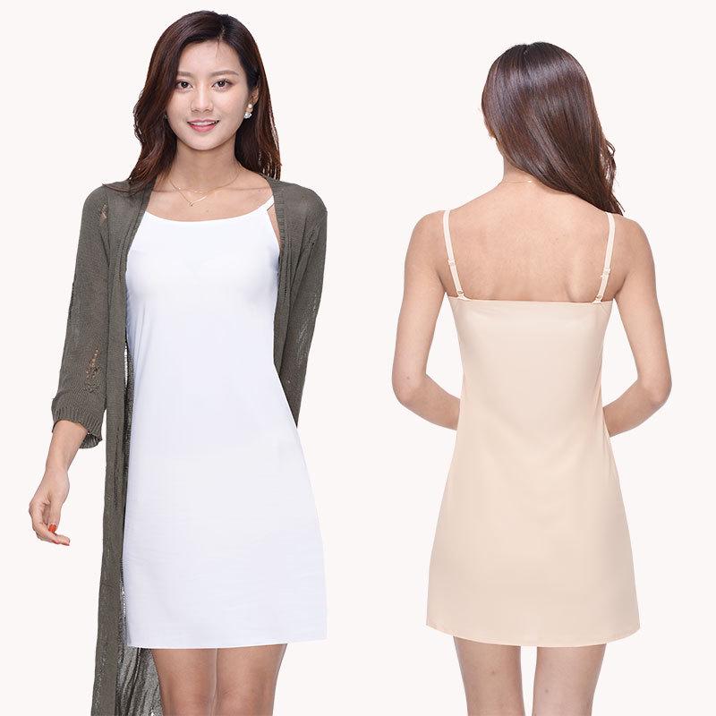 Женская ультратонкая шелковая бесшовная комбинация-платье на бретельках-спагетти