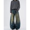 Kisko American High Street Washed Vintage Whiskered Straight-Leg Jeans Unisex Trendy Brand Cool Casual Vibe Pants