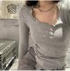 Women's Gray Autumn Long Sleeve Fitted Crop T-Shirt — купить товар онлайн с бесплатной доставкой по всему миру!