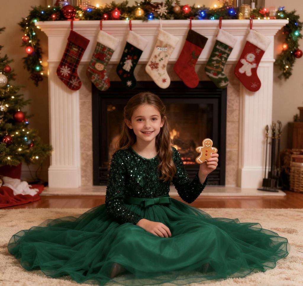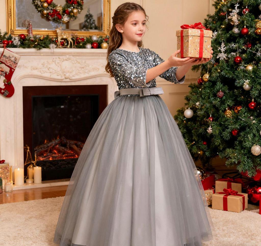 Вечернее платье с пайетками с длинным рукавом для девочек для банкетов