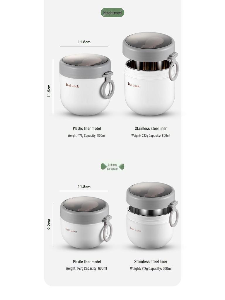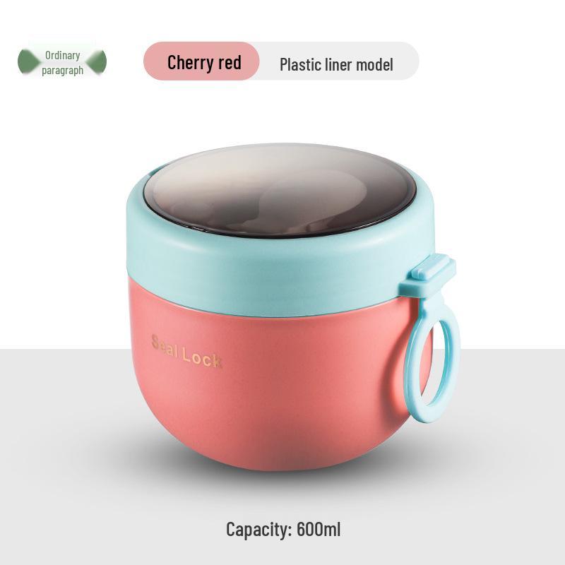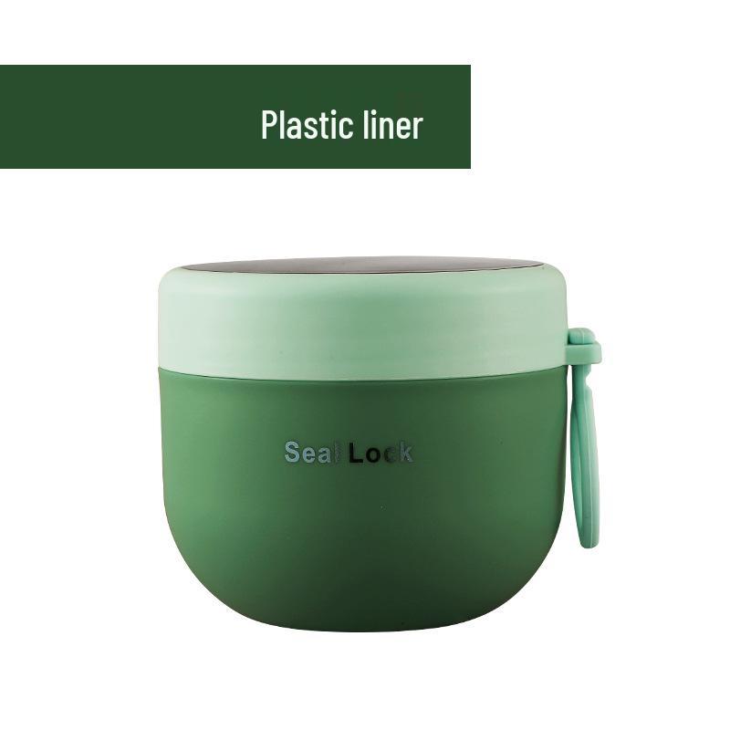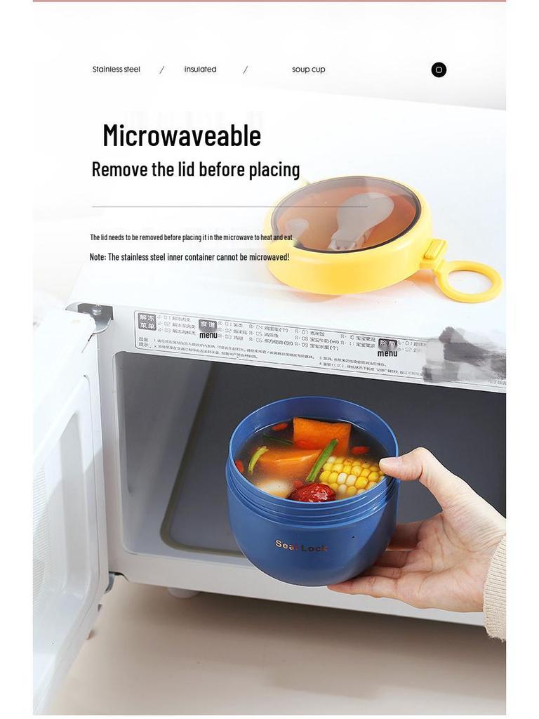 Портативная изолированная кружка для завтрака из нержавеющей стали 304 с ложкой - Микроволновая кружка для овсянки, супа и молока