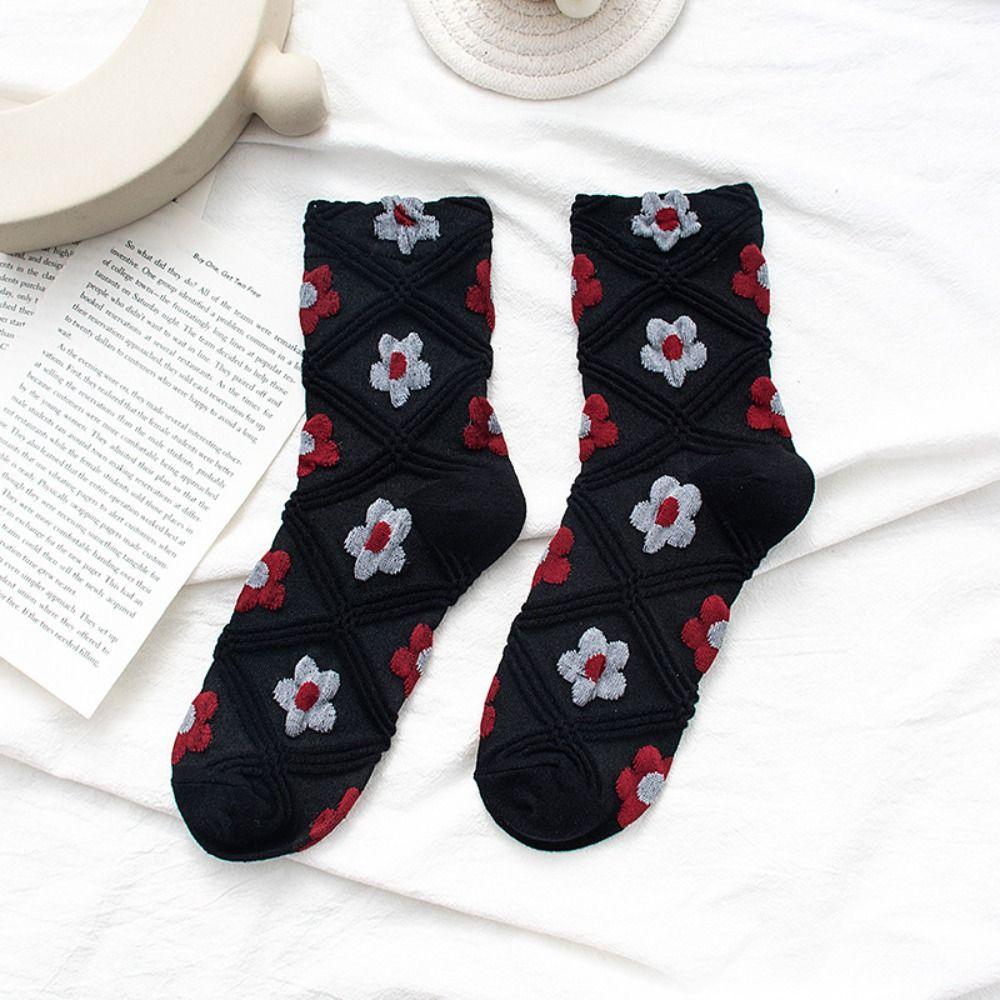 5Pairs Sweet Mid Tube Socks Girls Breathable Autumn Flower Socks Women Cotton Socks Autumn Winter