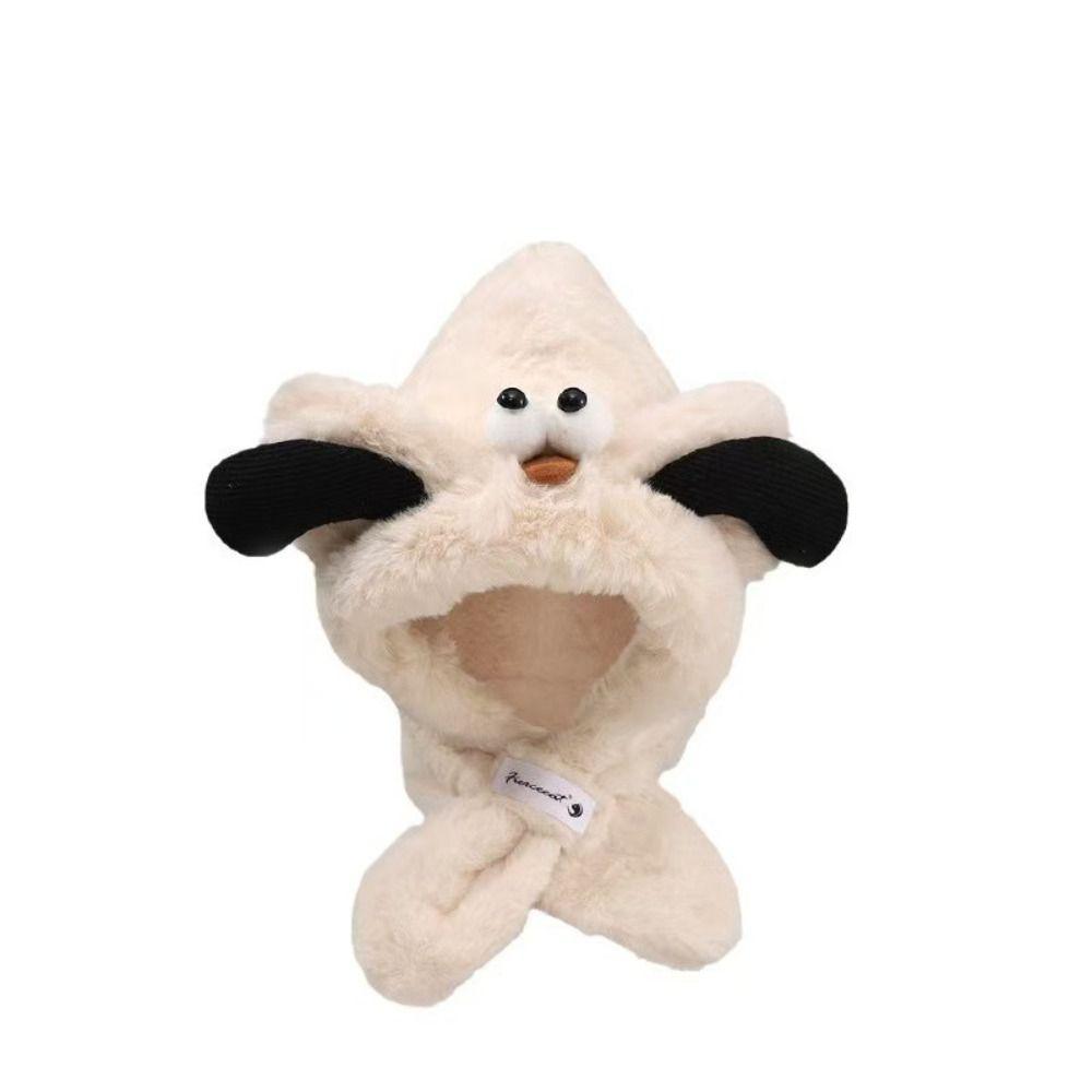 Dog Ears Cute Hooded Scarf Creative Plush Integrated Hat Hat Scarf Set Winter