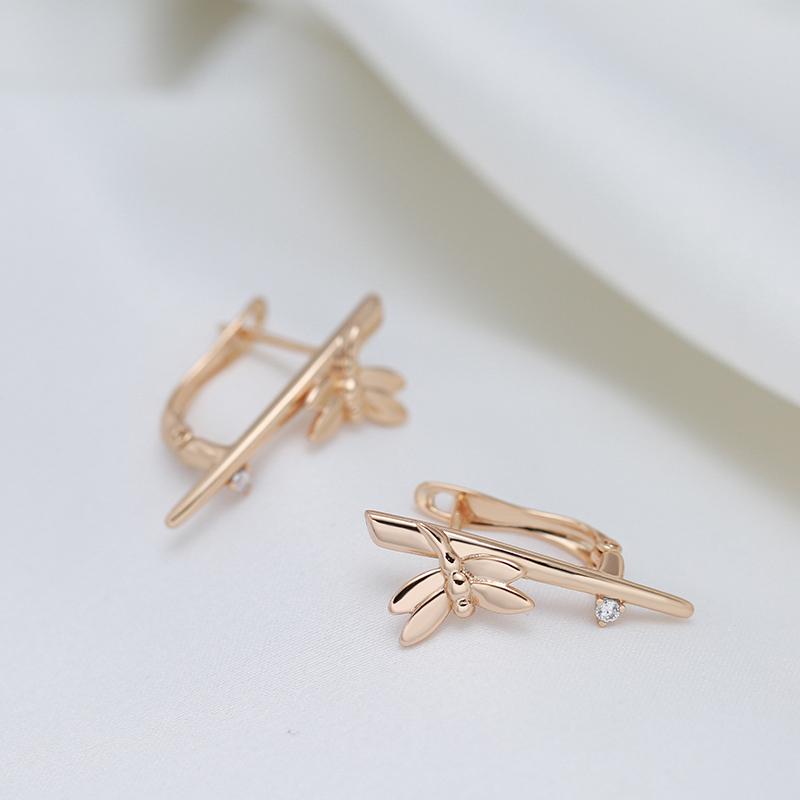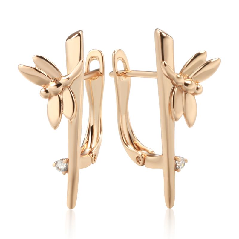 Fashion Glossy Dragonfly English Earrings For Women Simple Rose Gold Long Drop Earrings Bride Wedding Daily Jewelry