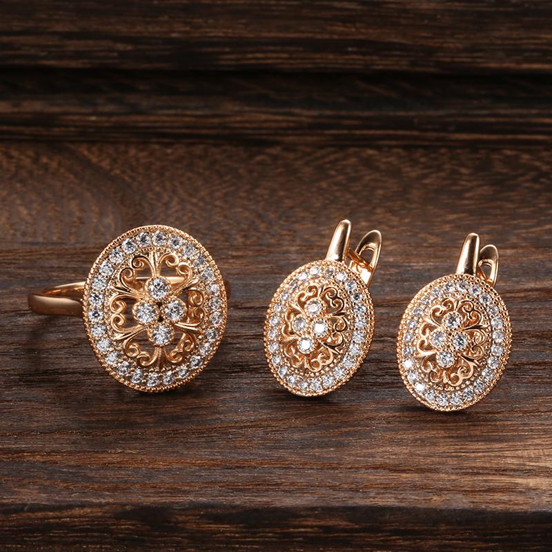 Мода Розовое Золото Ожерелье Серьги Кольцо Наборы Для Женщин Натуральный Циркон Этнический Цветок Невеста Свадебный Набор Ювелирных Изделий