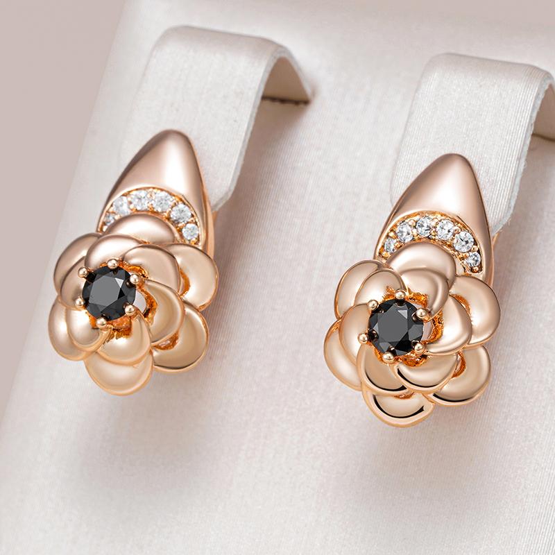 Черные серьги-цветы из натурального циркона для женщин, трендовые, креативные, цвета розового золота, винтажные, свадебные украшения, подарки для вечеринок