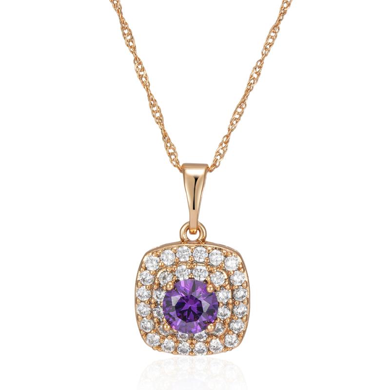 Блестящее фиолетовое квадратное колье-подвеска из натурального циркона для женщин, цвет розового золота, хрустальная подвеска, винтажные украшения — купить товар онлайн с бесплатной доставкой по всему миру!