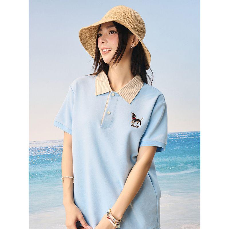 HACR Women Harshandcruel Korean Style Retro College Plaid Collar Fake Two-Piece Color Block Embroidery Polo Shirt — купить товар онлайн с бесплатной доставкой по всему миру!