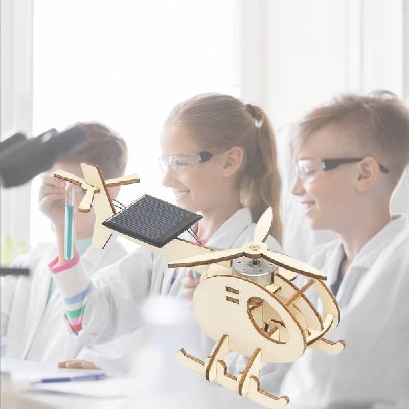 Educational Diy Solar-powered Helicopter Model For Kids 7-14 Years Old Customizable Wooden Material