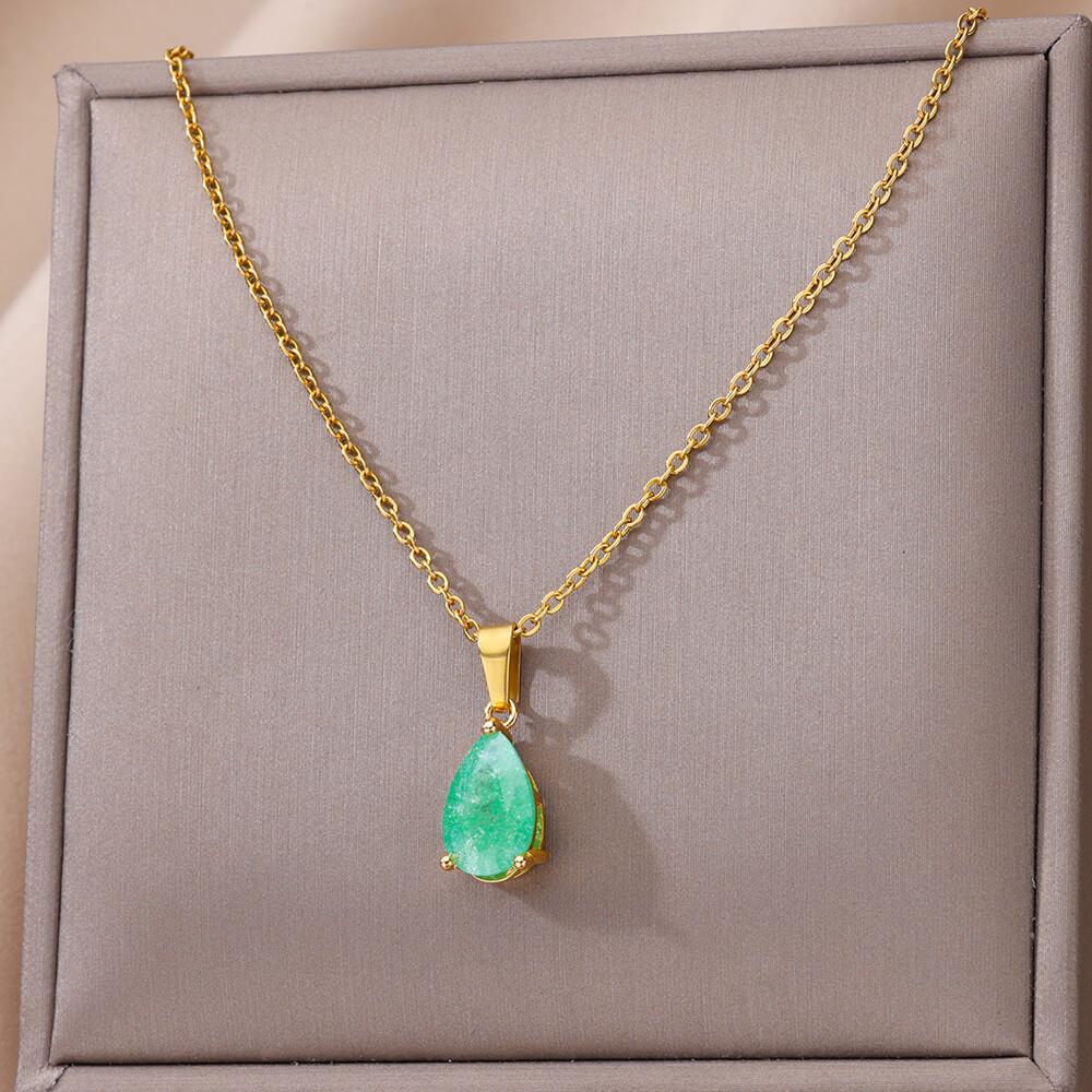 Цирконовые ожерелья-капли для женщин, золотистого цвета, из нержавеющей стали, ожерелье-капля воды, свадебное, исцеляющее, рождественское ювелирное украшение, подарок для женщины