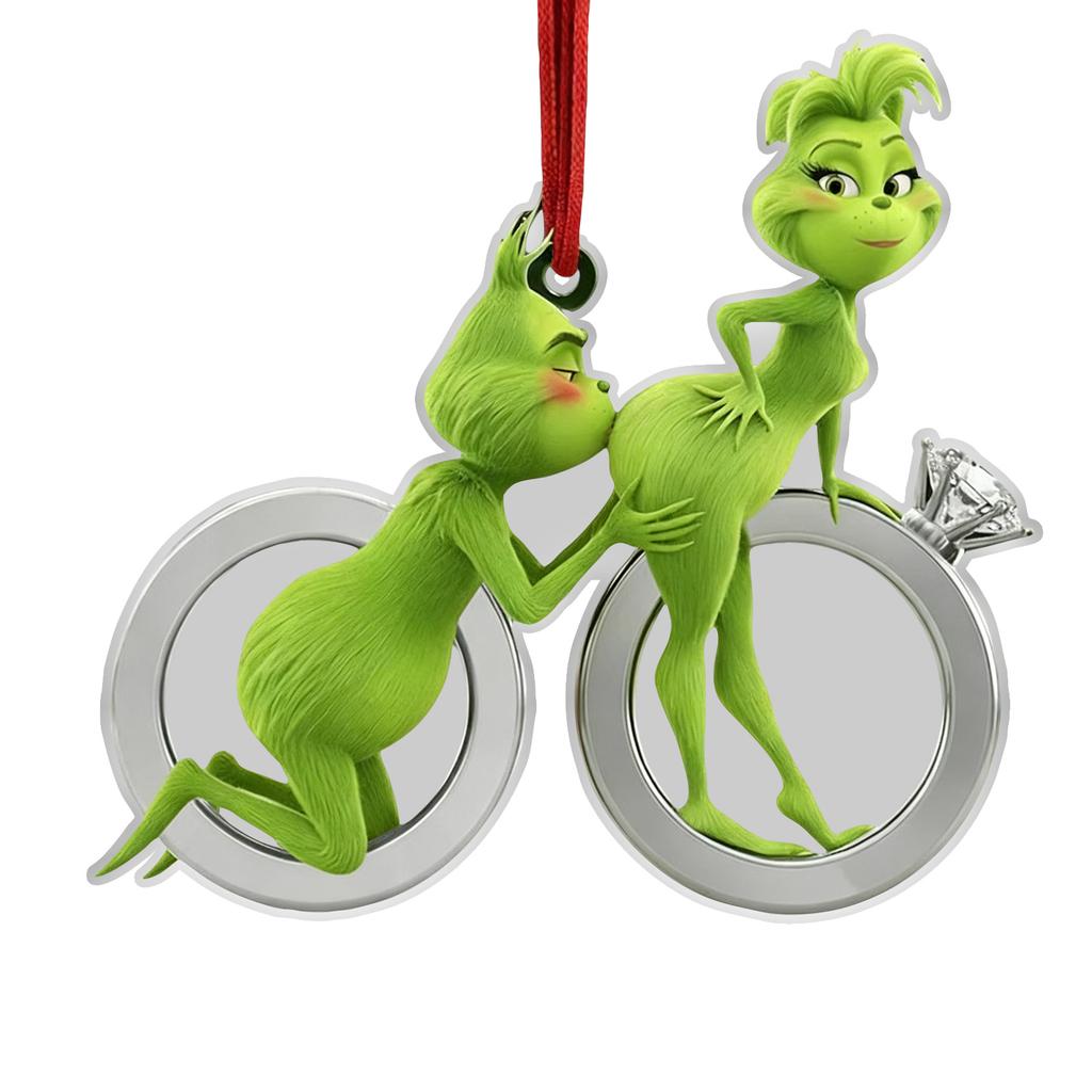 Персонализированные рождественские фигурки пары, 2D плоские зеленые рождественские фигурки пары, Забавный подарок на годовщину для мужей и жен.