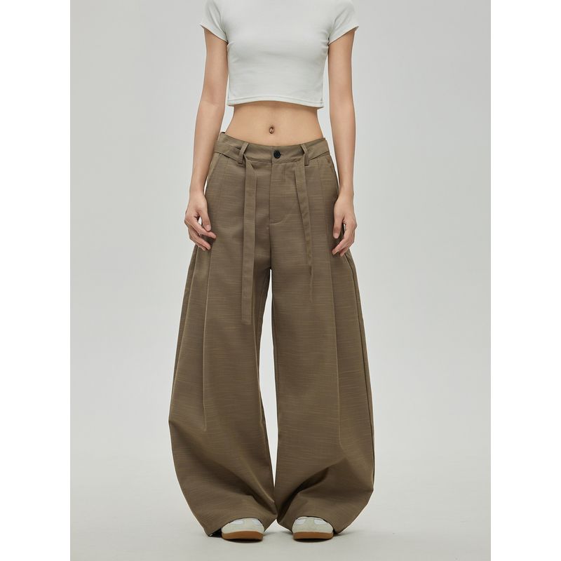 Black of Exit American High Street Style Solid Color Loose Wide-Leg Floor-Length Pants Autumn and Winter New Lace-Up Casual Pants