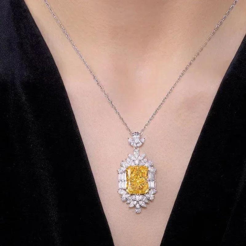 Women'S Sparkling Yellow Cubic Zirconia Necklace Luxury Fashion Jewelry For Wedding Anniversary Party Accessory Gift — купить товар онлайн с бесплатной доставкой по всему миру!