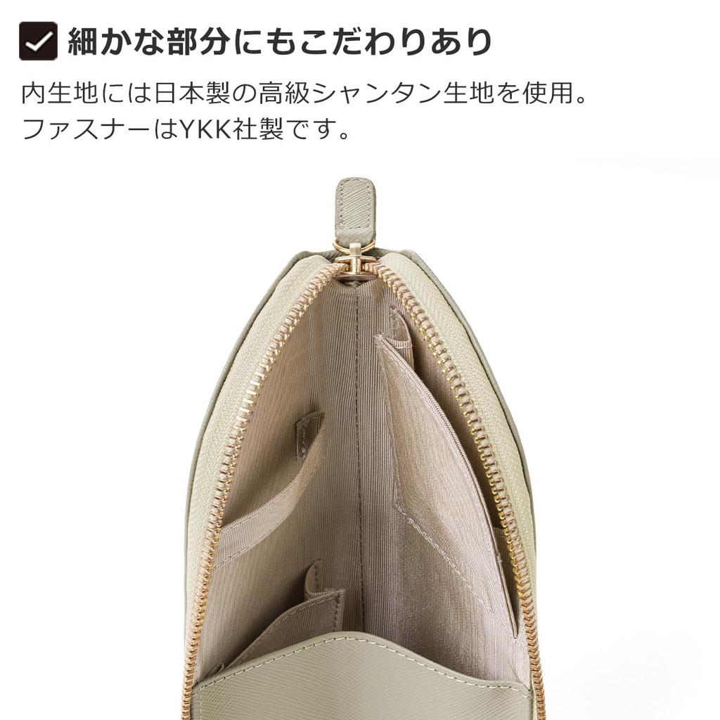 The bag is made of simple and elegant prism-embossed leather. The interior is made of high-quality Japanese Shantung fabric. The zipper is made by the reliable YKK company.