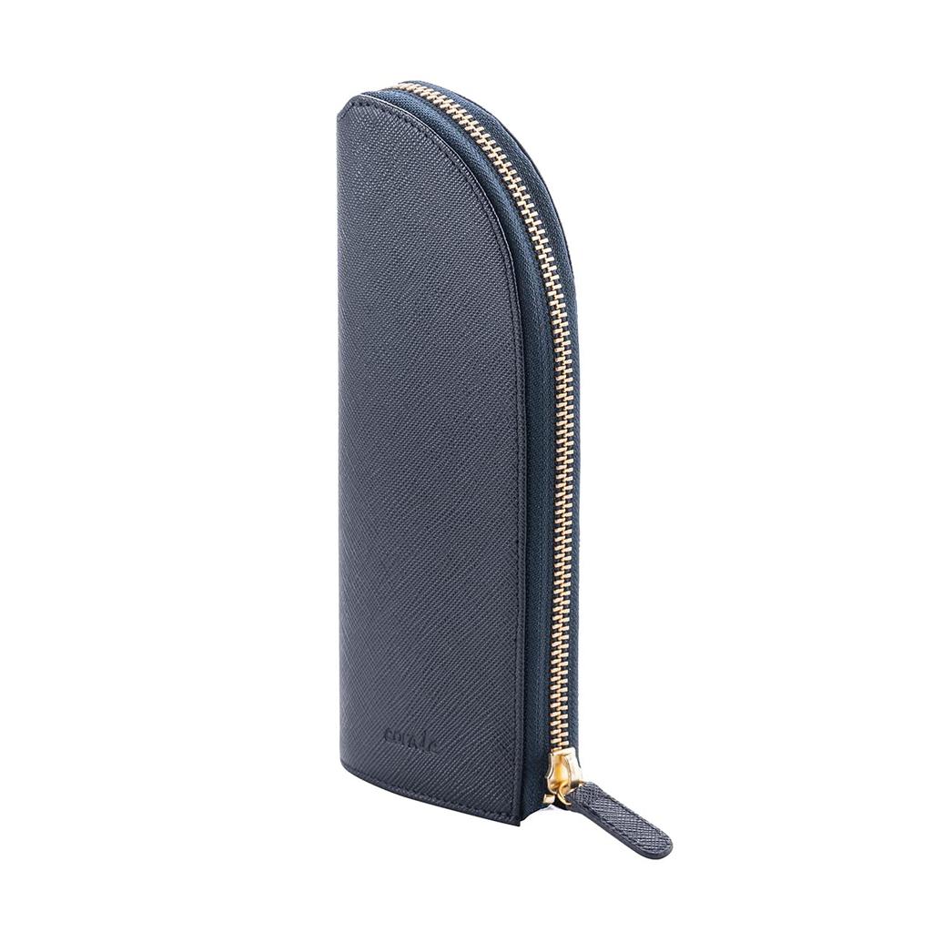 A genuine leather stand pen case that can stand on its own and can also be used as a pen holder.