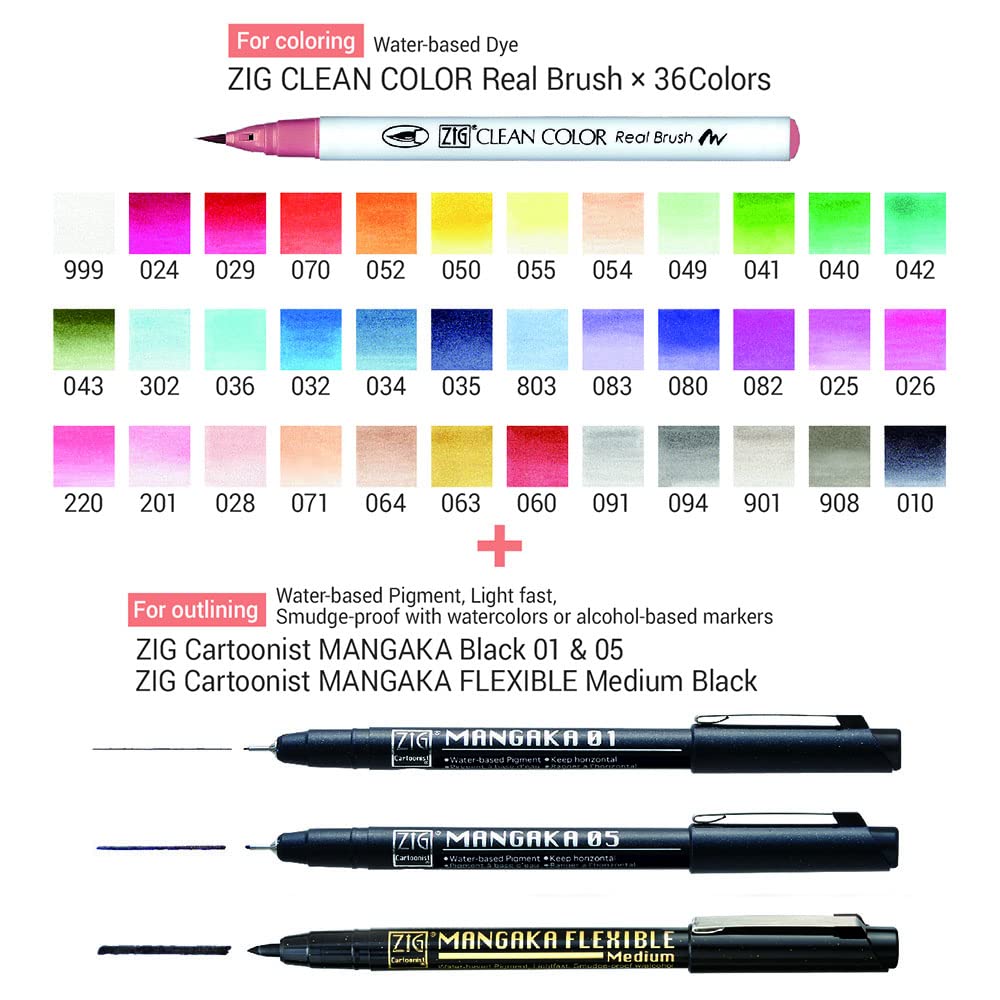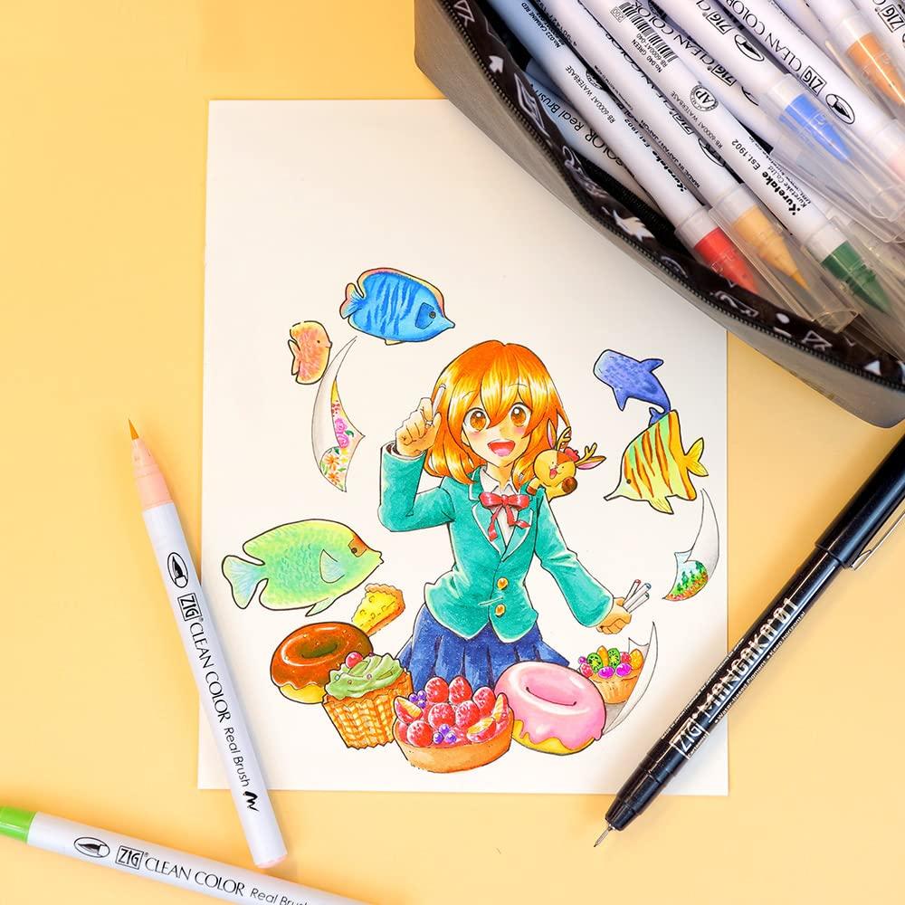 Набор, который включает в себя «ZIG Clean Color Real Brush» и «ZIG Cartoonist MANGAKA» с оригинальным чехлом