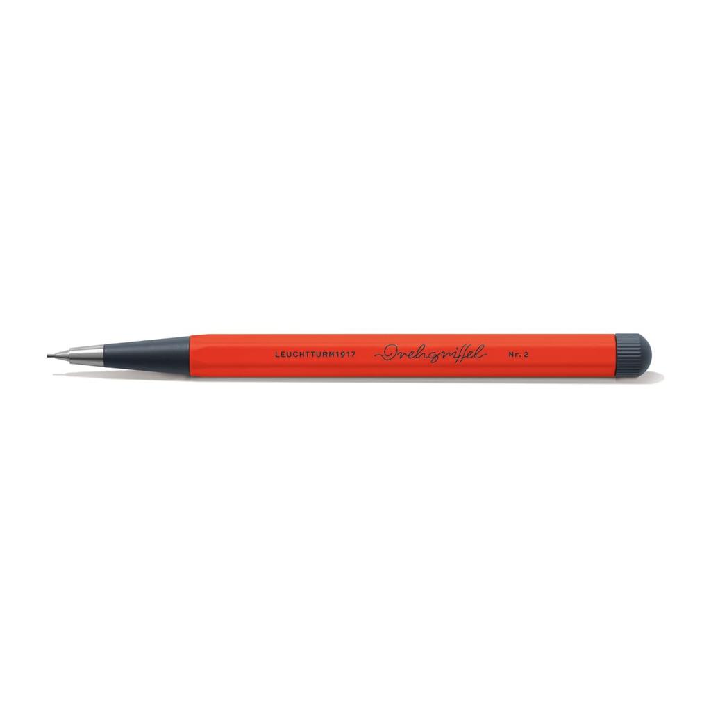 The twist mechanism and refills are also made in Germany, making this writing instrument a recipient of numerous design awards. The Dreg Reful No. 2 mechanical pencil mechanism is made in Germany. Turning the twist mechanism head opens the chuck at the tip and pushes the lead forward. Returning the twist mechanism closes the chuck, holding the lead in place. The lead can be stored in the main body, and the pen also features a chamber mechanism that pushes out the next refill as soon as a refill is used up.
