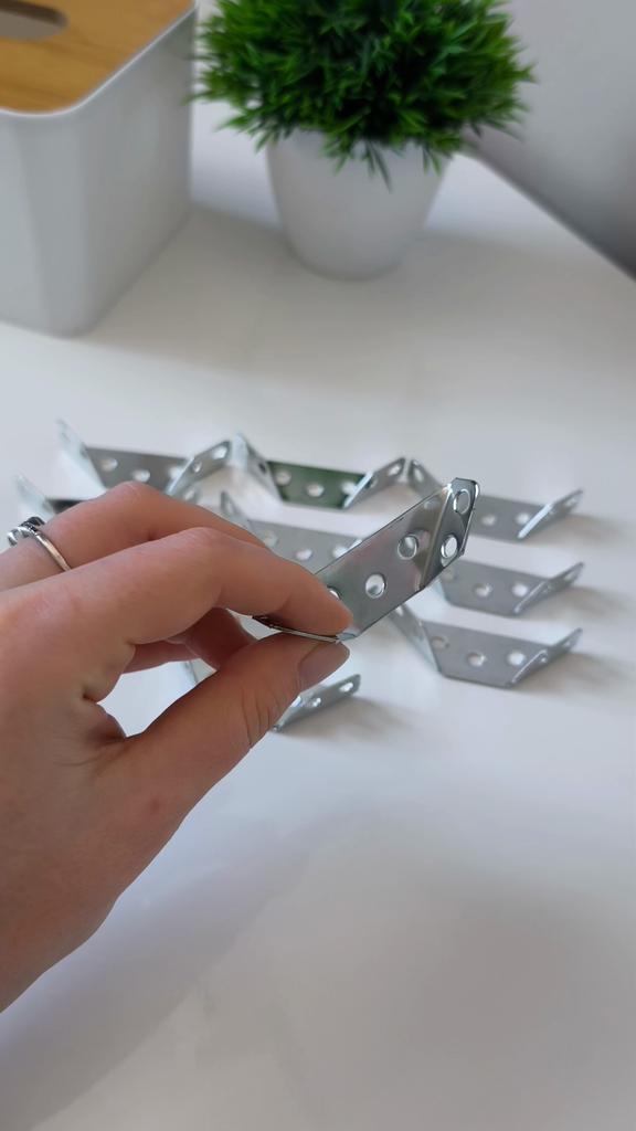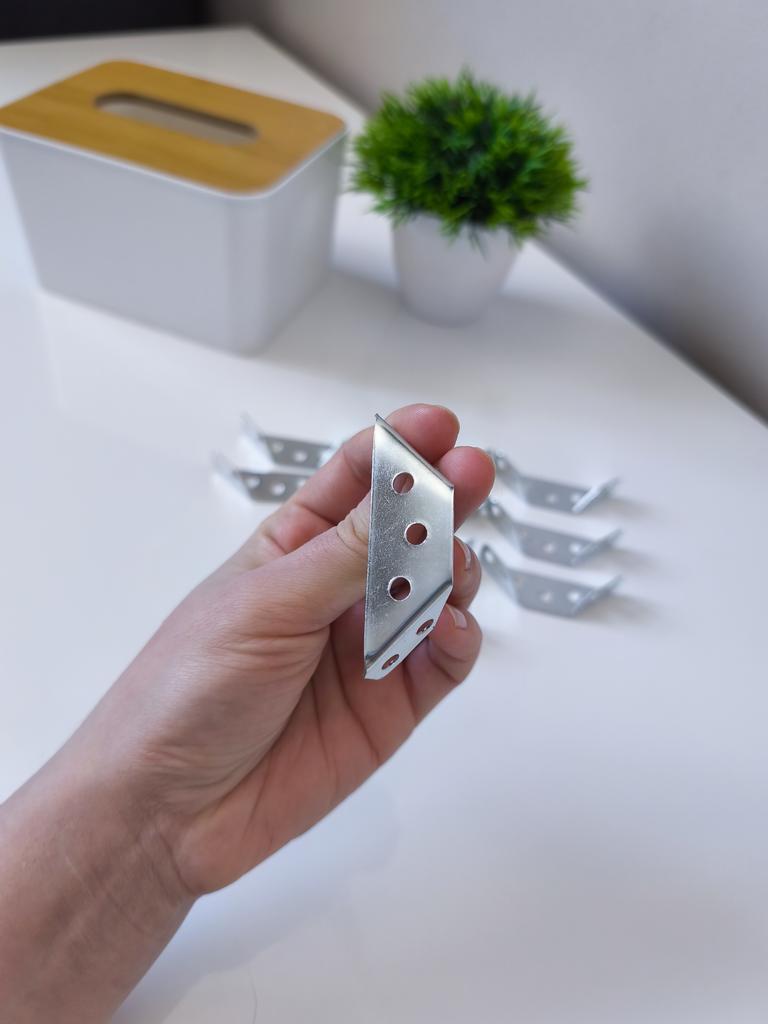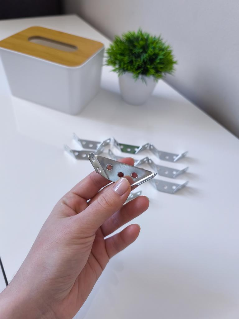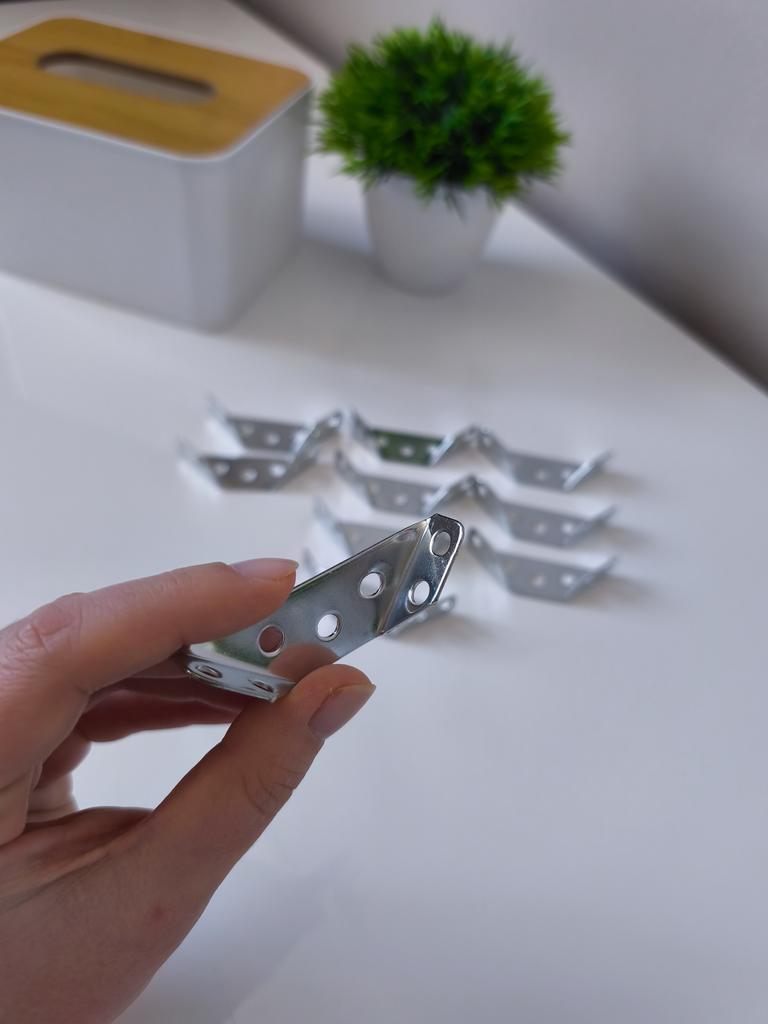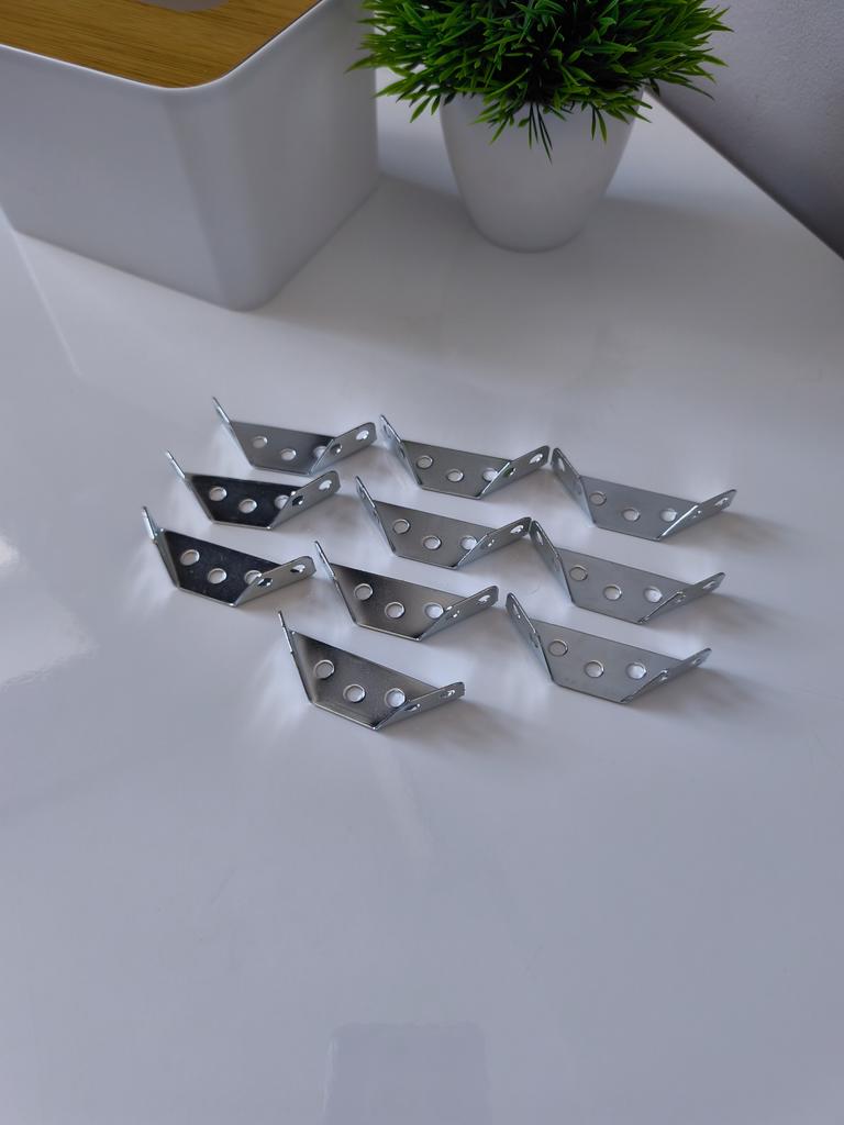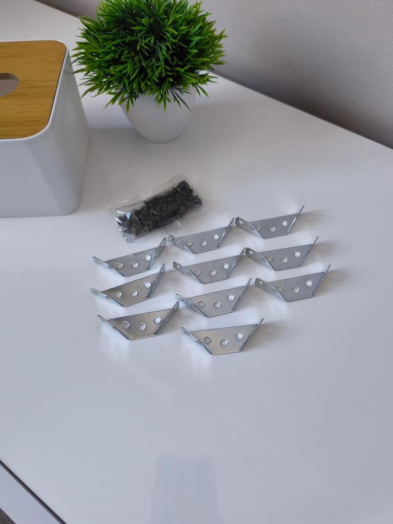 Это угловые мебельные стяжки (уголки) трапециевидной формы. Главное о товаре: * Назначение: Используются для жесткого соединения деталей мебели под углом 90 градусов (полок, каркасов, столешниц). * Комплектация: 10 металлических уголков и пакетик с саморезами для крепления. * Особенность: Форма «трапеции» обеспечивает большую площадь прилегания и жесткость по сравнению с обычными узкими уголками. Итог: Надежная классика для сборки или ремонта домашней мебели своими руками.
