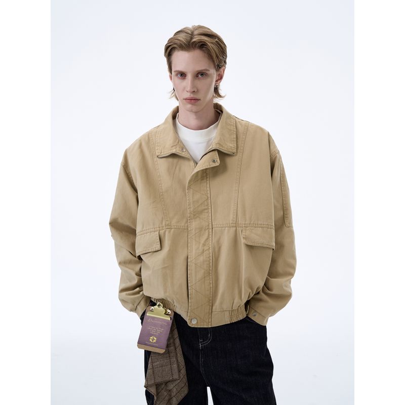 Kisko Американский Бомбер в Стиле Хай-стрит Куртка Рабочая с Воротником-стойкой Унисекс Модный Бренд Крутой Чистый Короткое Свободное Пальто