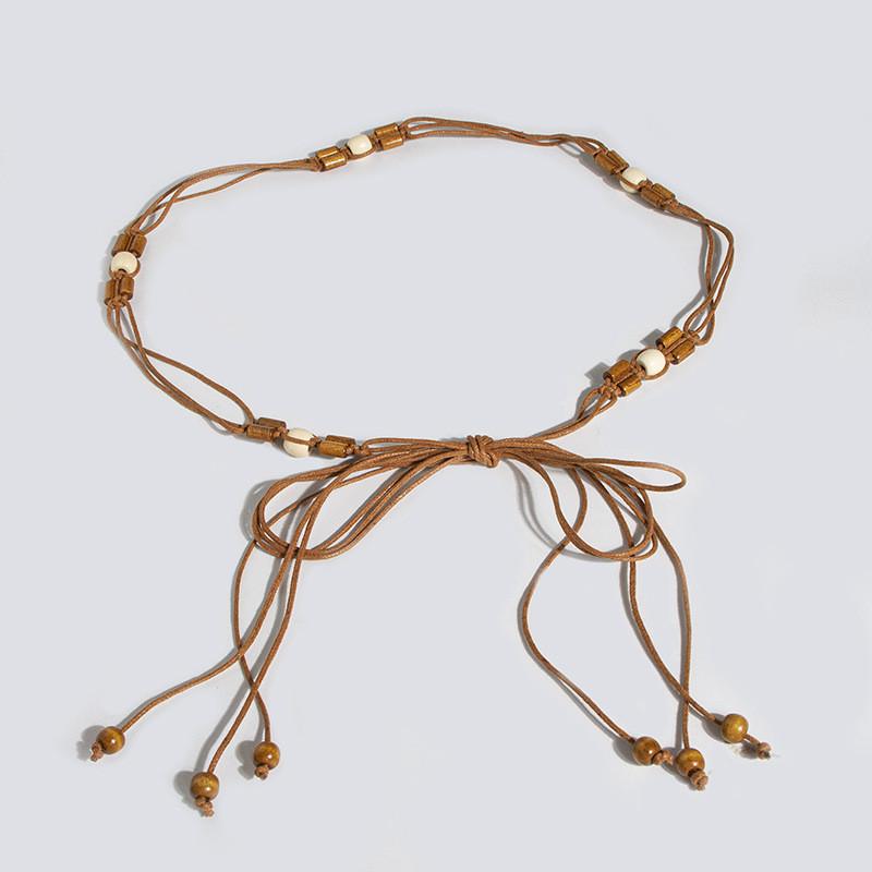 Богемный пояс-веревка на талию с деревянными бусинами для повседневной летней фестивальной одежды