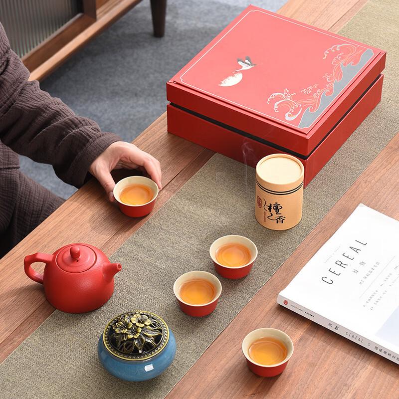 Traditional Chinese Guochao Ceramic Tea & Incense Set