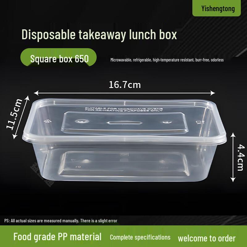 Yishengtong 650ml Rectangular Disposable Food Containers (300 Sets)