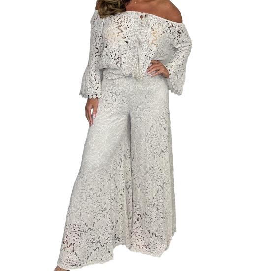 2 шт./компл. Женский комплект топ и брюки с ажурной отделкой, с открытыми плечами, свободный, длинный — купить товар онлайн с бесплатной доставкой по всему миру!
