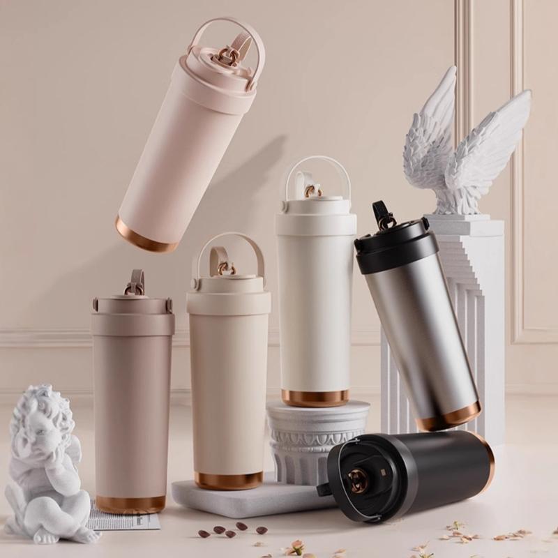 750ml Stainless Steel Coffee Mug with Ceramic Interior and Leak proof Straw Lid